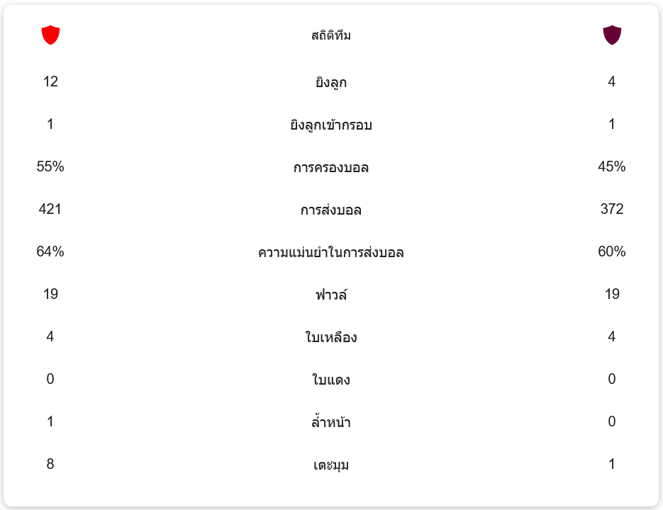 - 🟨 นาทีที่ 90: ออตโต้ ฮินดริช โดนใบเหลืองจากการถ่วงเวลา