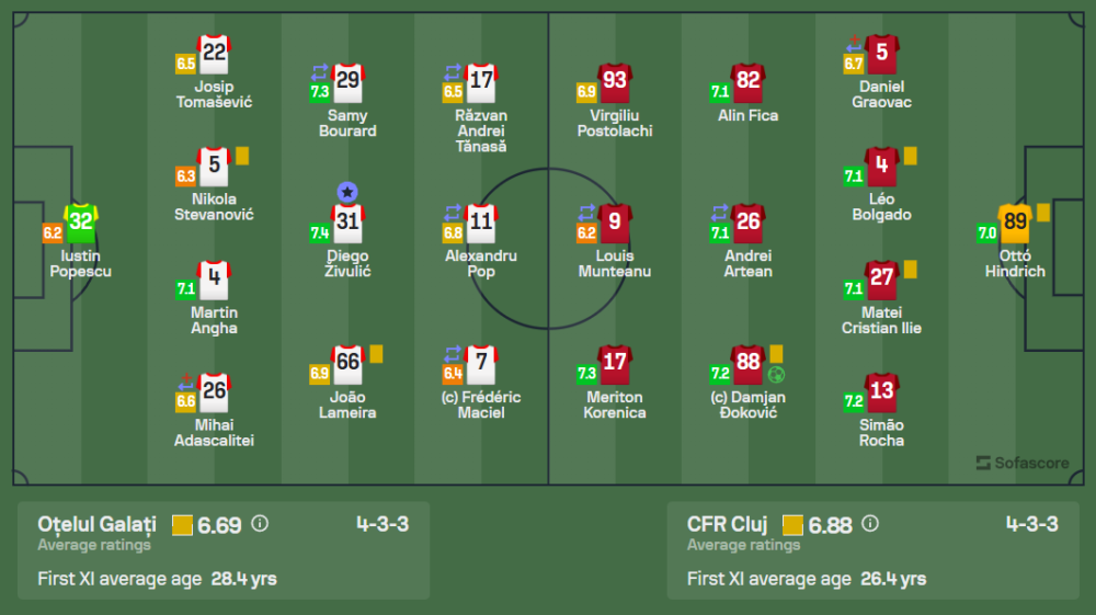 ดีเอโก ซิฟูลิค จากทีม โอเตลุล กาลาติ ทำผลงานยอดเยี่ยม ควบคุมเกมในแดนกลางได้ดี แม้ทีมจะพ่ายแพ้ แต่เขาคือผู้เล่นที่โดดเด่นที่สุดในสนาม ด้วยคะแนน 7.4