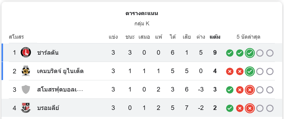 หลังจากจบเกมนี้ ชาร์ลตัน แอธเลติก ขึ้นนำเป็นจ่าฝูงกลุ่ม K เก็บได้ 9 คะแนนเต็มจาก 3 นัด ขณะที่ บรอมลีย์ ยังคงอยู่ในอันดับสุดท้ายของกลุ่ม มีเพียง 2 คะแนน ต้องเร่งฟอร์มเพื่อหวังโอกาสเข้ารอบต่อไป