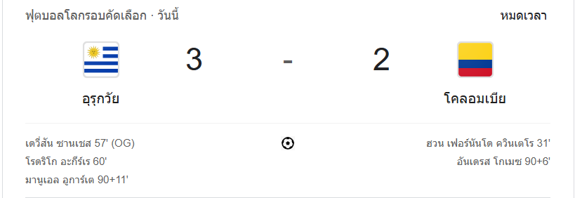 ผลบอลสดฟุตบอลโลก รอบคัดเลือก โซนอเมริกาใต้ 2024 ระหว่าง ทีม อุรุกวัย vs โคลัมเบีย 16/11/67 ดูบอลย้อนหลัง คลิปไฮไลท์ ดูบอลฟุตบอลโลก 2024
