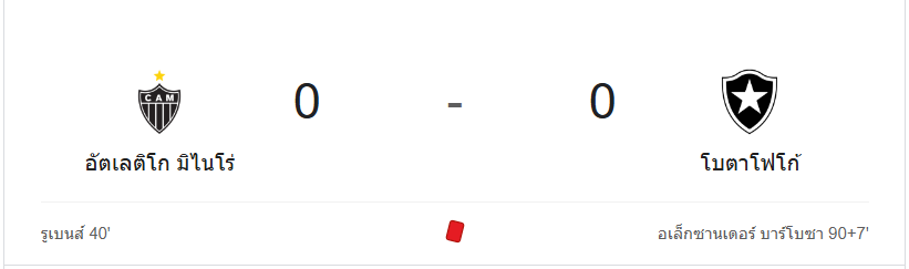 ผลบอลสด กังเปโอนาตู บราซีเลย์รู แซรียีอา 2024 ระหว่าง อัตเลติโก มิไนโร่ 0-0 โบตาโฟโก้ วันนี้ 21/11/67