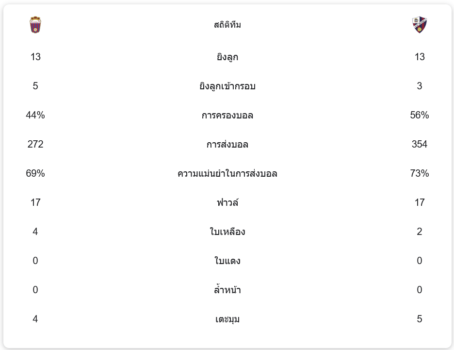 เกมนี้ทั้งสองทีมมีโอกาสยิงประตูเท่ากันที่ 13 ครั้ง แต่เอลเดนเซ่สามารถส่งบอลเข้ากรอบได้มากกว่าที่ 5 ครั้ง ขณะที่ฮูเอสก้าทำได้เพียง 3 ครั้ง แม้ฮูเอสก้าจะครองบอลได้เหนือกว่าที่ 56% แต่ความแม่นยำในการส่งบอลของพวกเขาอยู่ที่ 73% ซึ่งสูงกว่าเอลเดนเซ่ที่มีเพียง 69% การส่งบอลของฮูเอสก้าก็มีจำนวนมากกว่าที่ 354 ครั้ง เทียบกับเอลเดนเซ่ที่ทำได้ 272 ครั้ง อย่างไรก็ตาม ความมุ่งมั่นและการเล่นเกมสวนกลับของเอลเดนเซ่ทำให้พวกเขาสร้างโอกาสสำคัญจนคว้าชัยชนะในเกมนี้ไปได้ ฟาวล์เกิดขึ้นเท่ากันทั้งสองทีมที่ 17 ครั้ง แต่เอลเดนเซ่โดนใบเหลืองไปถึง 4 ใบ ขณะที่ฮูเอสก้าโดนเพียง 2 ใบ ทั้งนี้ เกมรับที่แน่นหนาและจังหวะสวนกลับที่เฉียบขาดคือกุญแจสำคัญของเจ้าบ้านในเกมนี้