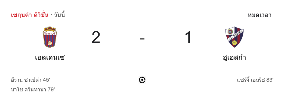 จาก : ผลบอลสด เซกุนด้า ดิวิชั่น 2024 ระหว่าง เอลเดนเซ่ 2-1 ฮูเอสก้า วันนี้ 21/11/67 – บ้านกีฬา