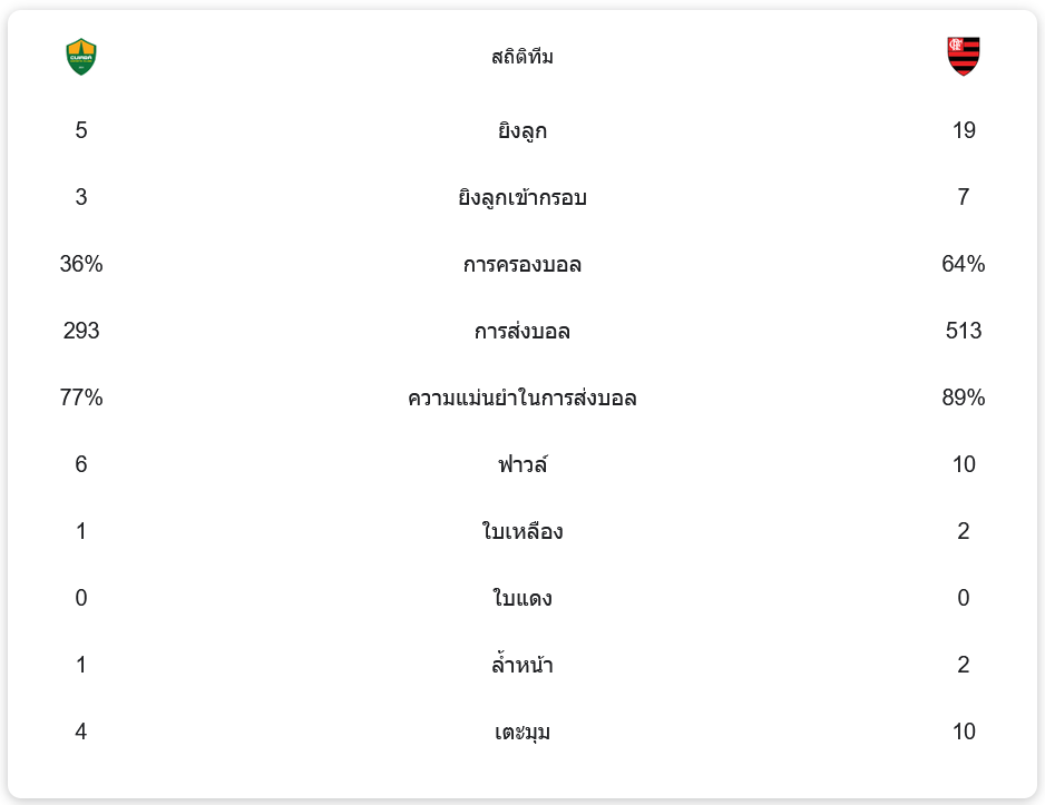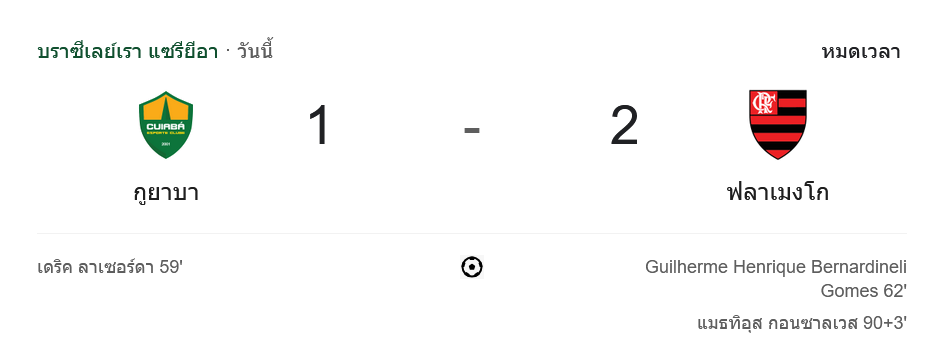 - ⚽ นาทีที่ 90+3: มาธิอุส กอนคาลเวส ยิงประตูชัยให้ฟลาเมงโก 2-1