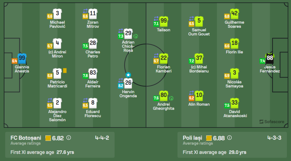 - กองกลาง: นิโคลาส ซามาโยอา (6.9), ฟลอริน อิลิเอ (6.6), ฟลอเรียน คัมเบรี (6.7)