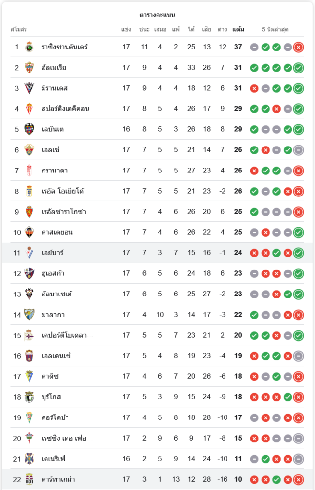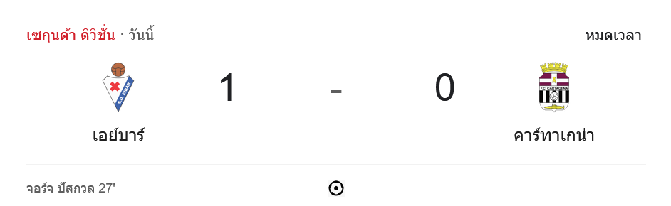จาก : ผลบอลสด เซกุนด้า ดิวิชั่น 2024 ระหว่าง เออิบาร์ 1-0 เอฟซี คาร์ทาเกน่า วันนี้ 03/12/67 – บ้านกีฬา