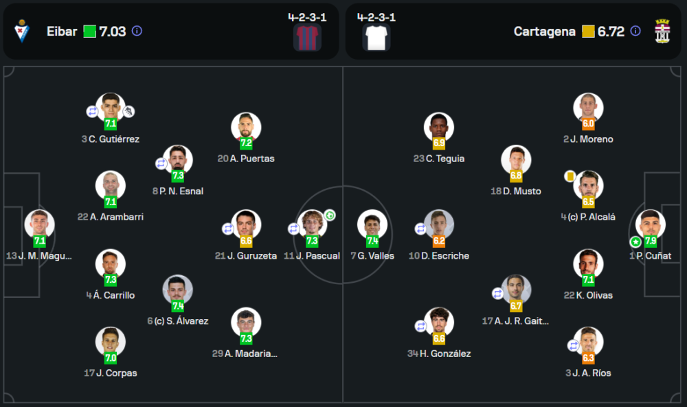 ปาโบล คูญัต (7.9) ผู้รักษาประตูของคาร์ทาเกน่า เซฟลูกยิงสำคัญหลายครั้ง แม้ทีมจะพ่ายแพ้ แต่เขาคือผู้เล่นที่ทำผลงานได้ยอดเยี่ยมที่สุดในเกมนี้