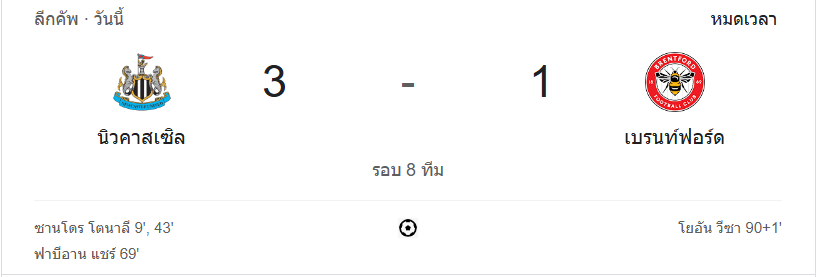 ชัยชนะครั้งนี้ของ นิวคาสเซิ่ล ยูไนเต็ด ช่วยตอกย้ำฟอร์มอันแข็งแกร่ง โดยเฉพาะการเล่นเกมบุกที่เฉียบคมของ ซานโดร โตนาลี และ ฟาเบียน แชร์ ขณะที่เบรนท์ฟอร์ด แม้จะมีช่วงฮึดท้ายเกม แต่ก็ไม่เพียงพอ
