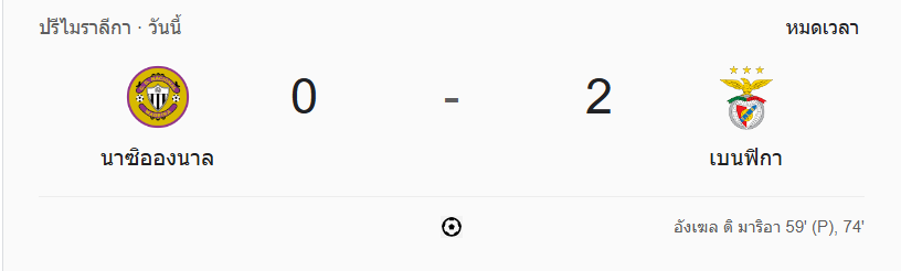 จบเกม: เบนฟิก้าบุกมาเอาชนะนาซิอองนาล 2-0 พร้อมคว้าสามแต้มสำคัญในเกมนี้