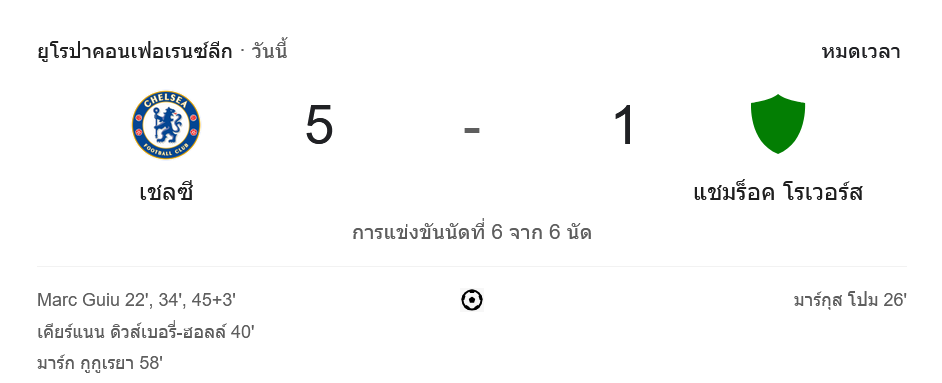 จาก : ผลบอลสด ยูฟ่ายูโรปาคอนเฟอเรนซ์ลีก 2024 ระหว่าง เชลซี 5-1 แชมร็อค โรเวอร์ส วันนี้ 20/12/67 – บ้านกีฬา