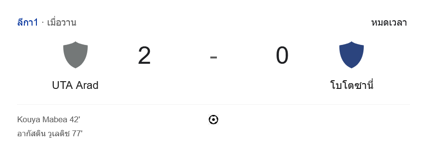 บ้านผลบอล สรุปผล ยูทีเอ อารัด เฉือนขาด! เปิดบ้านถล่มโบโตซานี่ 2-0 ศึกโรมาเนีย ลีกา 1