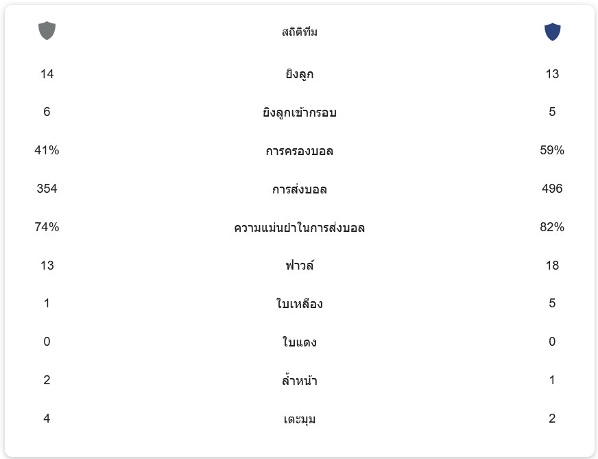 ยูทีเอ อารัด ยิงทั้งหมด 14 ครั้ง เข้ากรอบ 6 ครั้ง มีการครองบอล 41% และจ่ายบอลสำเร็จ 74% ขณะที่ โบโตซานี่ มีการครองบอล 59% แต่เข้ากรอบเพียง 5 ครั้งจากการยิง 13 ครั้ง