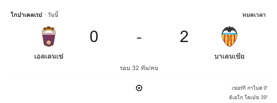 จาก : ผลบอลสด โกปาเดลเรย์ 2024 ระหว่าง เอลเดนเซ่ 0-2 บาเลนเซีย วันนี้ 8/1/68 – บ้านกีฬา