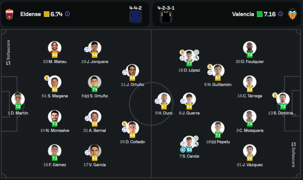 แซร์กี้ กานอส คือหัวใจของบาเลนเซียในเกมนี้ ด้วยการยิง 1 ประตูและ 1 แอสซิสต์ ทำให้เขาได้รับคะแนน 8.6 และเป็นผู้เล่นที่โดดเด่นที่สุดในสนาม