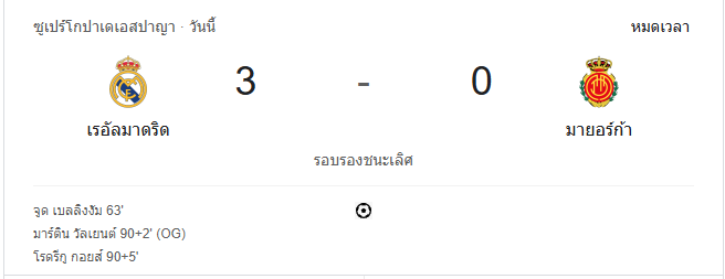 นาทีที่ 97: จบเกม เรอัล มาดริดเอาชนะมายอร์ก้า 3-0