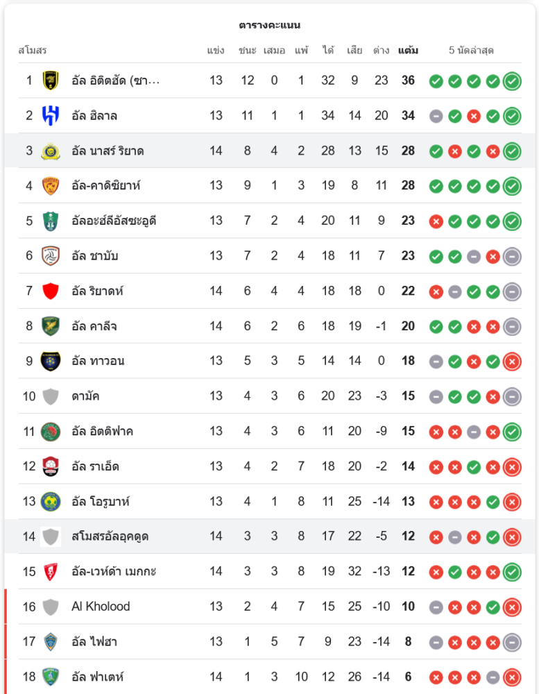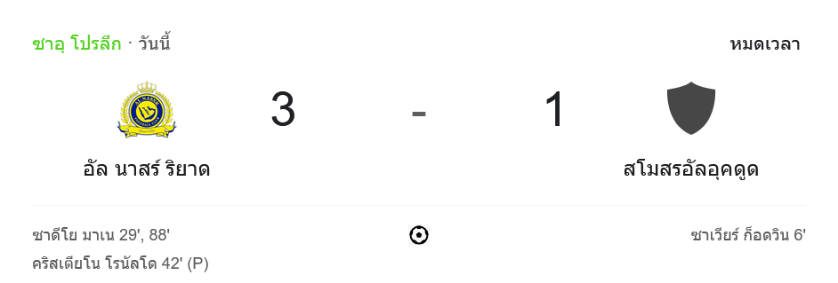 จาก : ผลบอลสด ซาอุดิ โปรเฟสชั่นแนล ลีก 2024 ระหว่าง อันนัศร์ 3-1 อัลอุคดูด วันนี้ 10/1/68 – บ้านกีฬา