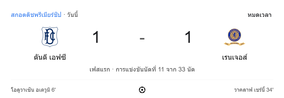 จาก : ผลบอลสด สกอตติชพรีเมียร์ชิป 2024 ระหว่าง ดันดี 1-1 กลาสโกว์ เรนเจอร์ส วันนี้ 10/1/68 – บ้านกีฬา