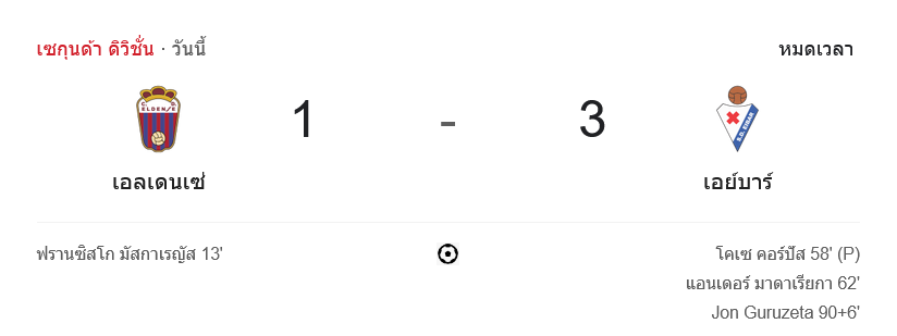 ⚽ 90+6’ จอน กูรูเซตา ยิงปิดท้ายให้เออิบาร์ชนะ 3-1