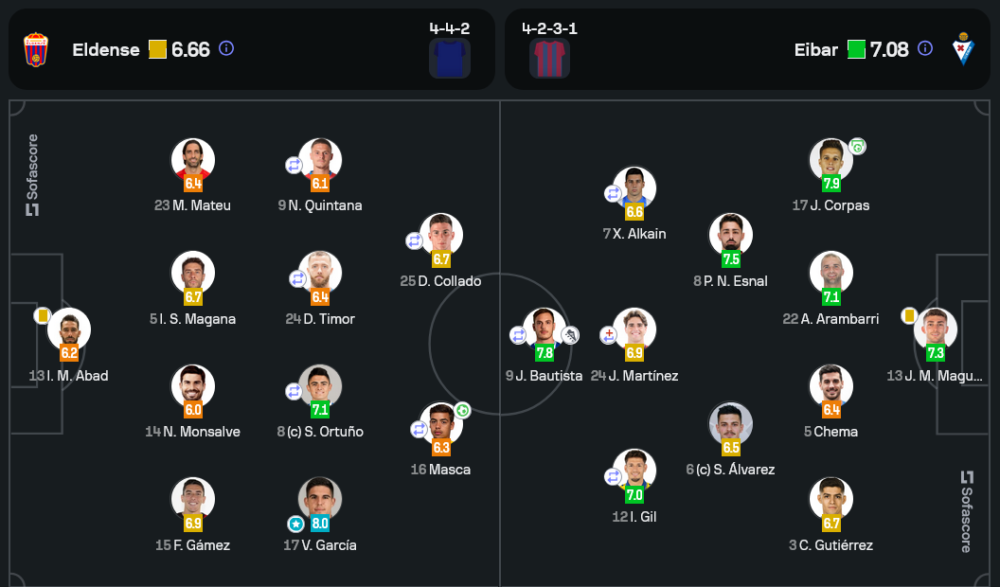 วิคเตอร์ การ์เซีย ผู้เล่นจากเอลเดนเซที่โดดเด่นที่สุดในเกมนี้ แม้ทีมจะแพ้แต่เขาทำผลงานได้ดีด้วยการสร้างโอกาสและการป้องกันในแดนกลาง คะแนนรวม 8.0 สะท้อนถึงคุณภาพของเขาในเกมนี้