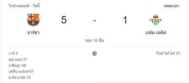 นาทีที่ 91: กรรมการเป่านกหวีดจบเกม บาร์เซโลน่าเอาชนะเรอัล เบติส 5-1 ในเกมที่พวกเขาแสดงศักยภาพอย่างยอดเยี่ยม