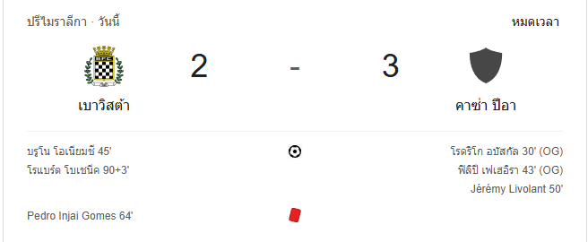 นาทีที่ 48: กรรมการเป่านกหวีดจบครึ่งแรก คาซ่า เปียนำโบอาวิสต้า 2-1