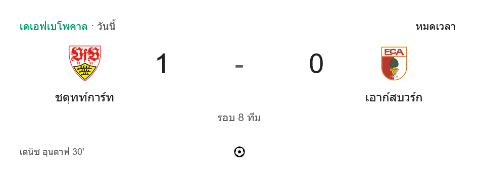 ⚽ 30′ เดนิซ อุนดาฟ ยิงประตูชัยให้สตุ๊ตการ์ต นำ 1-0 (แอสซิสต์: เออร์เมดิน เดมีโรวิช)