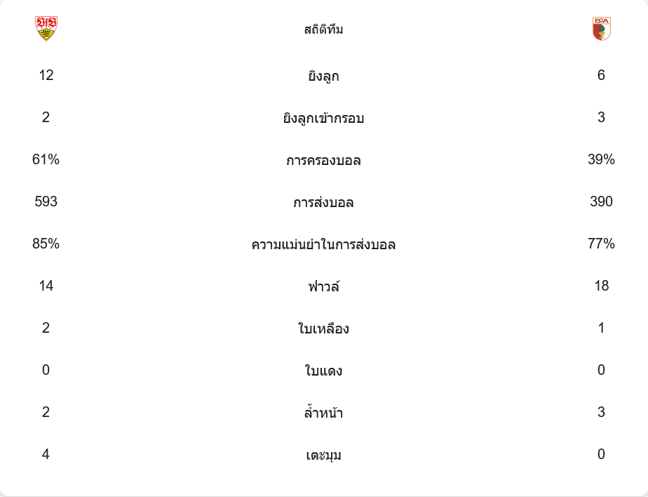 เอาก์สบวร์กเลือกใช้แผน 3-4-2-1 ที่เน้นการตั้งรับและโต้กลับเร็ว แม้จะครองบอลได้น้อยกว่า (39%) แต่พวกเขาก็มีโอกาสสร้างจังหวะอันตรายได้หลายครั้ง อย่างไรก็ตามการจบสกอร์ไม่คมพอ การเปลี่ยนตัวผู้เล่นในครึ่งหลังช่วยเพิ่มพลังเกมรุก แต่ไม่เพียงพอที่จะทำลายแนวรับของสตุ๊ตการ์ตได้ นี่คือจุดเด่นที่เห็นได้จากการ วิเคราะห์บอล ในเกมนี้