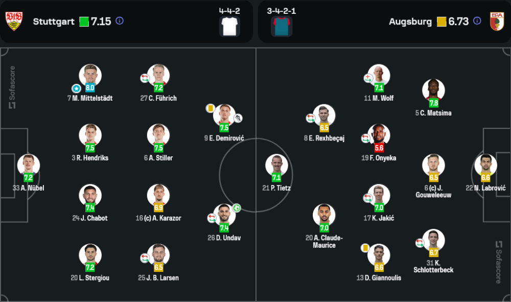 - สตุ๊ตการ์ต: มักซิมิเลียน มิทเทิลสตัดท์ (8.0), เออร์เมดิน เดมีโรวิช (7.5), อันเจโล สติลเลอร์ (7.5)