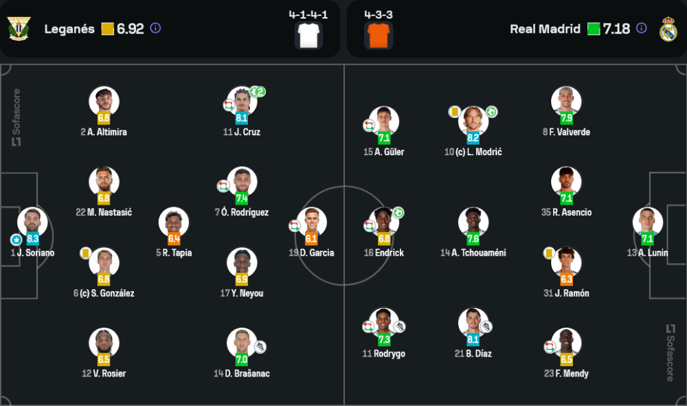 เรอัล มาดริด มาในระบบ 4-3-3 เน้นการครองบอลและการเข้าทำที่รวดเร็ว โดยมีโมดริชเป็นหัวใจในการสร้างสรรค์เกม ส่วนเกมรุกใช้ความเร็วของวินิซิอุสและโรดรีโก้ ในขณะที่ เลกาเนส เลือกใช้แผน 4-1-4-1 เน้นการตั้งรับอย่างมีวินัยและสวนกลับเร็ว ซึ่งทำได้ดีมากในครึ่งหลัง การ วิเคราะห์บอล จากเกมนี้ชี้ให้เห็นว่า แม้จะเป็นทีมรอง แต่เลกาเนสสามารถสร้างความลำบากให้กับทีมใหญ่อย่างมาดริดได้อย่างยอดเยี่ยม