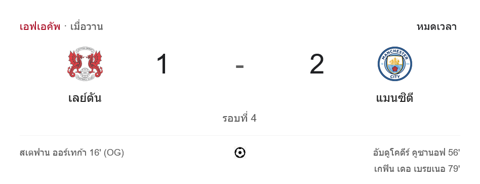 จาก : ผลบอลสด เอฟเอ คัพ 2024 ระหว่าง เลย์ตัน โอเรียนท์ 1-2 แมนเชสเตอร์ ซิตี้ วันนี้ 8/2/68 – บ้านกีฬา