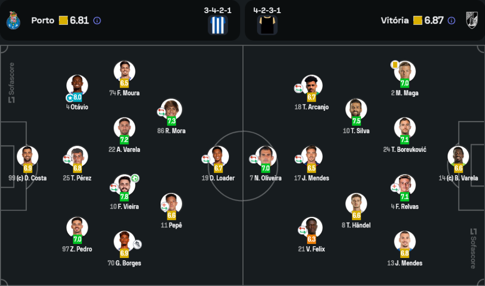 โอตาวิโอ มิดฟิลด์ตัวเก่งของปอร์โต้ คุมจังหวะเกมและช่วยสร้างสรรค์โอกาสได้ตลอดทั้งเกม ได้คะแนนสูงสุดที่ 8.0