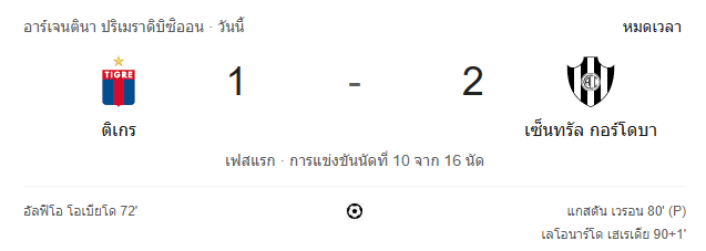 ผลบอลสด อาร์เจนติน่า พรีเมียร์ดิวิชั่น 2024 ระหว่าง คลับ อัตเลตีโก ติเกร 1-2 เซนทรัล คอร์โดบา เอชดีอี วันนี้ 18/3/68