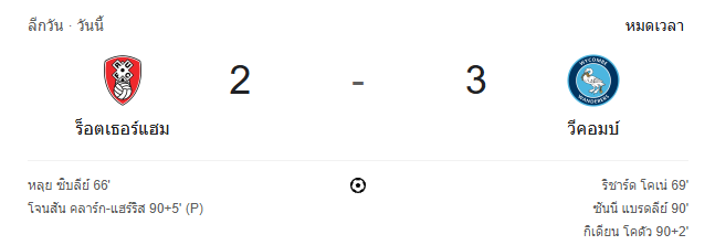 - นาทีที่ 99 กรรมการเป่าหมดเวลา วีคอมบ์ บุกชนะ โรเธอร์แฮม 3-2!