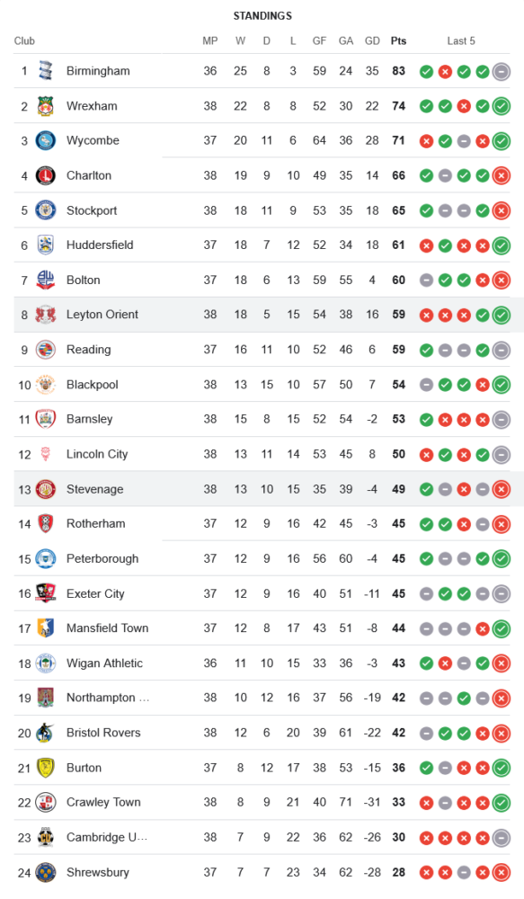ชัยชนะของ เลย์ตัน โอเรียนท์ ทำให้พวกเขาเก็บเพิ่มเป็น 59 แต้มจาก 38 นัด ขยับขึ้นมาอยู่อันดับ 8 ของตารางลีกวัน ไล่จี้โซนเพลย์ออฟลุ้นเลื่อนชั้นเต็มตัว โดยมีแต้มเท่ากับ เร้ดดิ้ง อันดับ 9 แต่ลูกได้เสียดีกว่า ด้าน สตีฟเนจ โบโรห์ พลาดโอกาสเก็บแต้มสำคัญ ร่วงมาอยู่ที่อันดับ 13 มี 49 คะแนน ห่างโซนเพลย์ออฟถึง 10 แต้มแล้วในตอนนี้