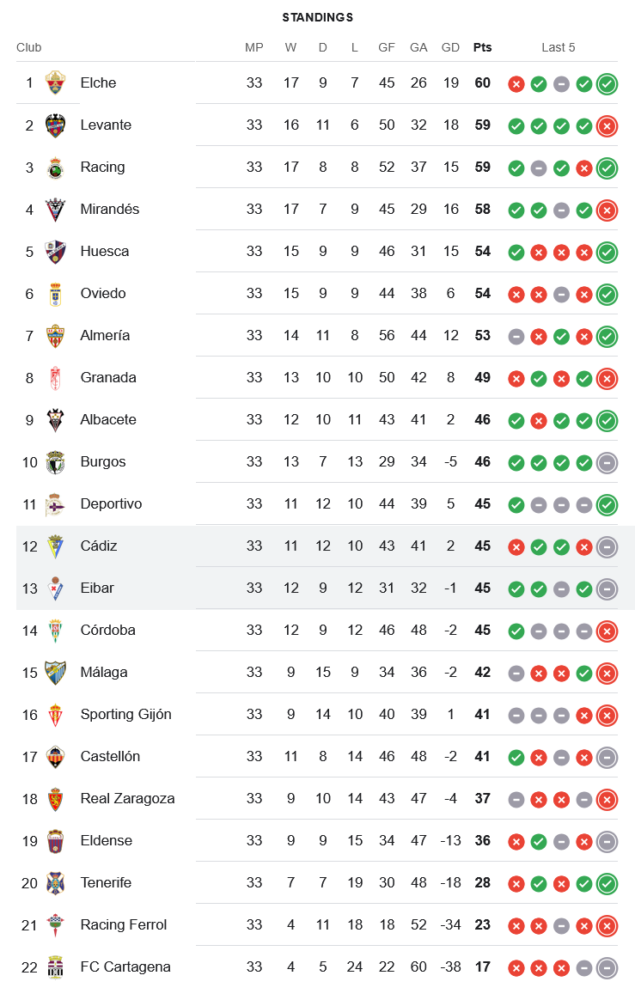 ผลเสมอในนัดนี้ทำให้ กาดิซ ยังคงอยู่ในอันดับที่ 12 ของตาราง เซกุนด้า ดิวิชั่น 2025 มี 45 คะแนน จาก 33 นัด เท่ากับ เออิบาร์ ที่อยู่อันดับที่ 13 และยังคงต้องการคะแนนเพิ่มเติมเพื่อขยับอันดับขึ้นไปให้สูงกว่านี้