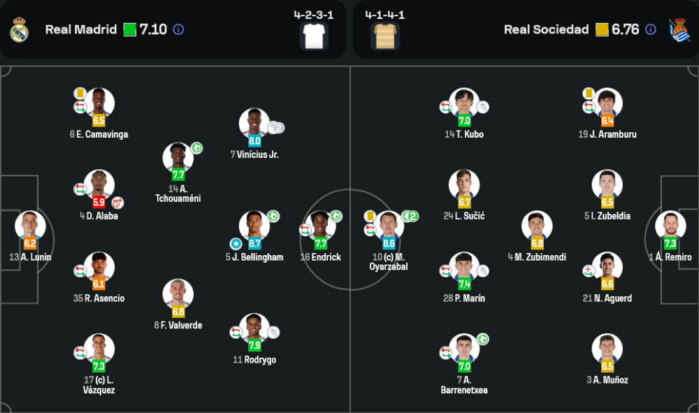 จู๊ด เบลลิงแฮม ได้รับการยกย่องเป็น Player of the Match ด้วยคะแนน 8.7 จากผลงานที่โดดเด่นในแดนกลาง ควบคุมเกมได้อย่างยอดเยี่ยมและทำประตูสำคัญให้ทีม