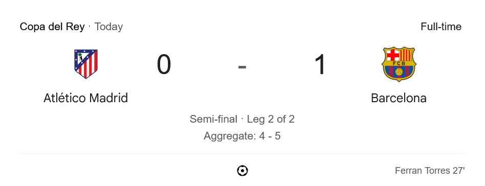 จาก : ผลบอลสดโกปาเดลเรย์ 2025 ระหว่าง แอตเลติโก้ มาดริด 0-1 บาร์เซโลน่า วันนี้ 3/4/68 – บ้านกีฬา
