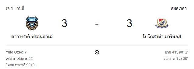 - จบเกม: คาวาซากิ ฟรอนตาเล่ 3-3 โยโกฮาม่า เอฟ มารินอส สุดเดือด