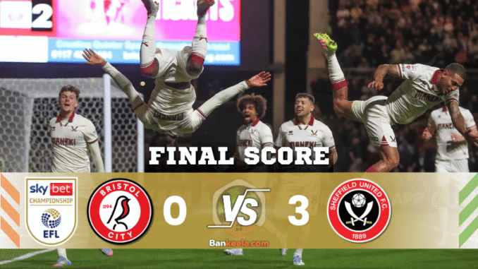 เกมรอบรองชนะเลิศ อีเอฟแอลแชมเปียนชิป เพลย์ออฟ 2025 นัดแรก ระหว่าง บริสตอล ซิตี้ เปิดรังแอชตัน เกต พบ เชฟฟีลด์ ยูไนเต็ด กลายเป็นฝันร้ายของเจ้าบ้าน หลังเสียถึงสามประตูและมีใบแดงไล่ Rob Dickie ตั้งแต่ช่วงทดเวลาครึ่งแรก ขณะที่ทีมเยือนโชว์ความเด็ดขาดทั้งการเข้าทำและคุมเกม ส่งผลให้ ผลบอลสด จบลงด้วยสกอร์ 0-3 กุมความได้เปรียบมหาศาลก่อนเกมเลกสอง