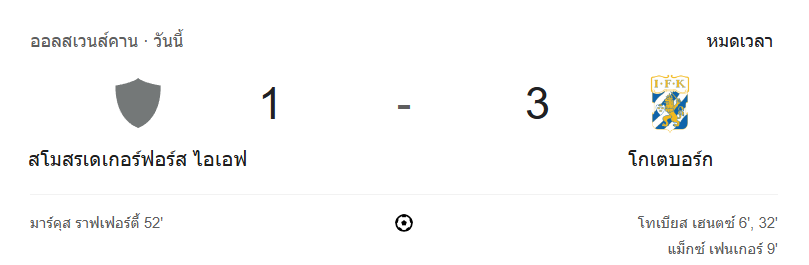 - นาทีที่ 96: จบเกม! โกเตบอร์กบุกคว้าชัย 3-1