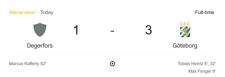 - ⚽ 32′ โกเตบอร์กหนี 3-0: Tobias Heintz ยิงเบิ้ลลูกที่สองของตัวเอง
