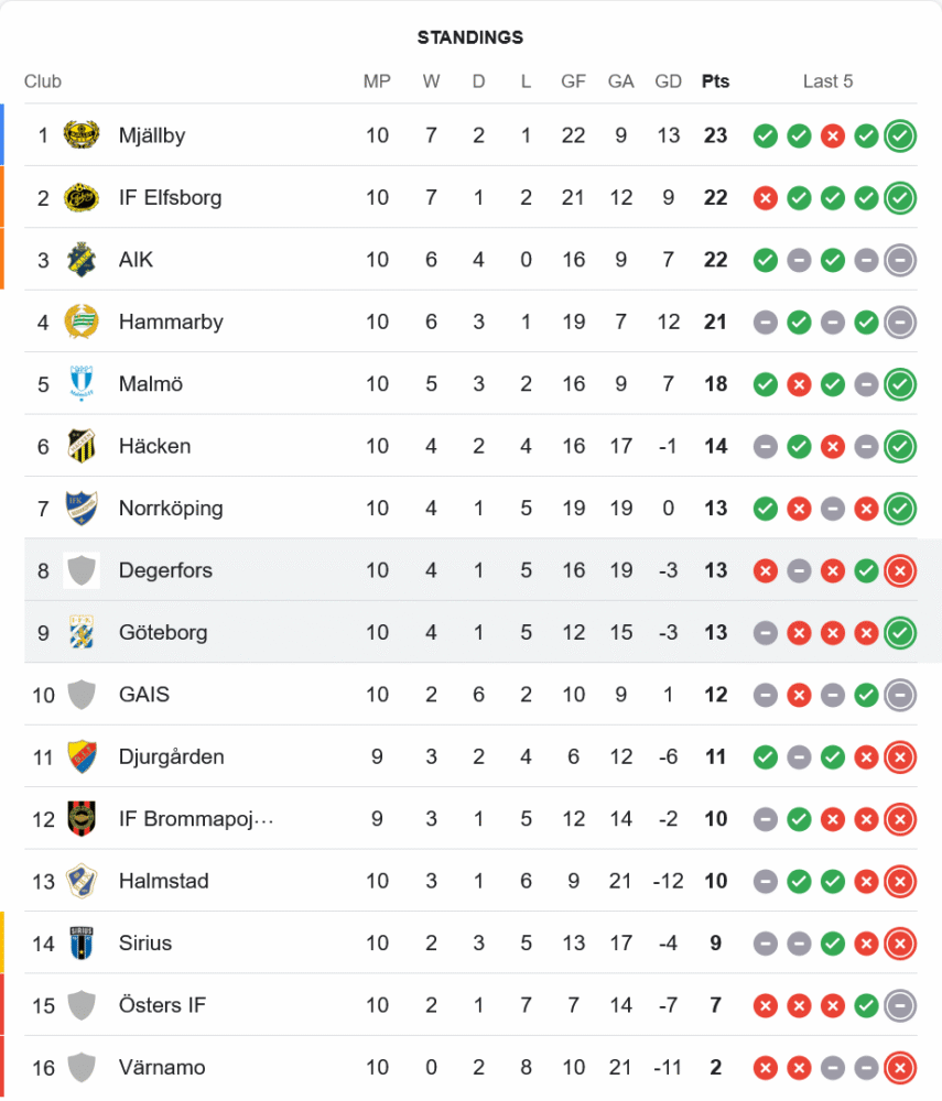 ชัยชนะนัดนี้ส่งผลให้ โกเตบอร์ก ขยับขึ้นมามี 13 คะแนนจาก 10 นัด ขยับขึ้นมาอันดับ 9 ของตาราง ขณะที่เดเกอร์ฟอร์สที่พ่ายคาบ้านยังคงอยู่ในอันดับ 8 มี 13 คะแนนเท่ากัน แต่ผลต่างประตูได้เสียยังเป็นรอง ถือเป็นแมตช์สำคัญที่ทั้งสองทีมต้องเร่งเก็บแต้มในโปรแกรมถัดไปเพื่อไต่ขึ้นท็อปโฟร์ของ บ้านผลบอล สวีเดนปีนี้