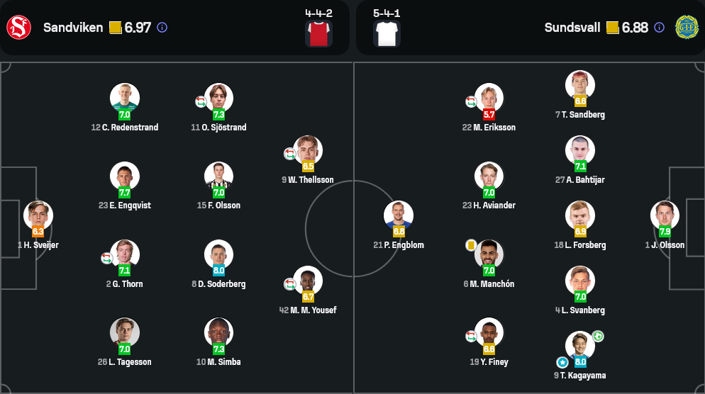 กองหลัง: ลูคัส ทาเกสสัน (7.0), กุสตาฟ ธอร์น (7.1), ดาเนียล โซเดอร์เบิร์ก (8.0), มูซองกา ซิมบา (7.3)