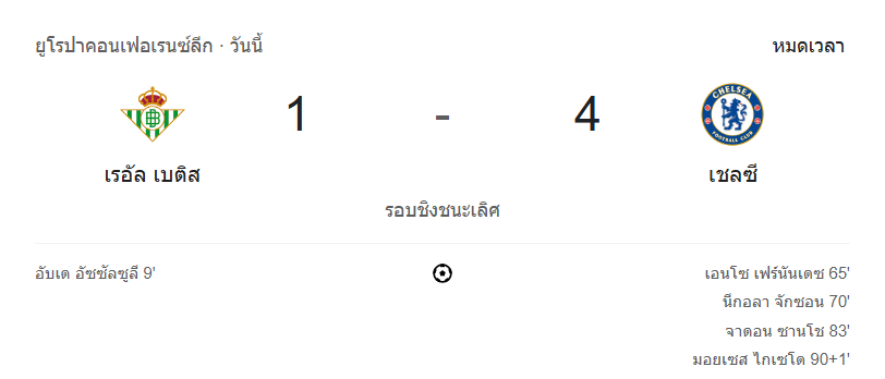 ผลบอลสด ยูฟ่าคอนเฟอเรนซ์ลีก 2025 ระหว่าง ทีม เรอัล เบติส vs เชลซี วันนี้ 29/5/68 ดูบอลย้อนหลัง คลิปไฮไลท์ ดูบอลยูฟ่าคอนเฟอเรนซ์ลีก 2025
