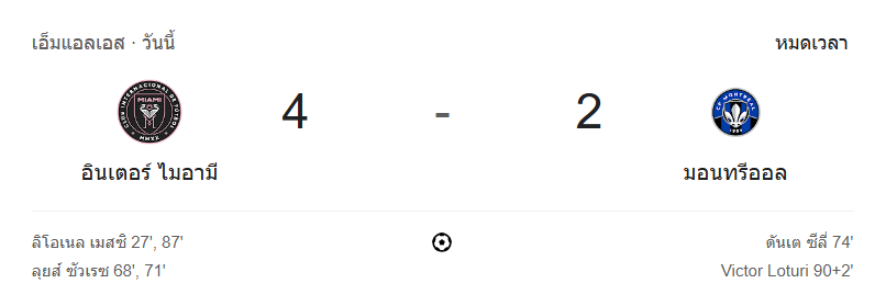 - นาทีที่ 94: จบเกม! อินเตอร์ ไมอามี เปิดบ้านชนะ มอนทรีออล 4-2