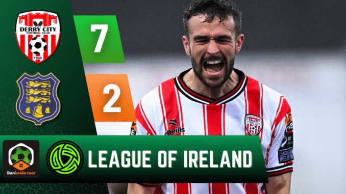 ศึกฟุตบอล ไอร์แลนด์ พรีเมียร์ลีก เกมมันประจำวัน บ้านกีฬา ตามเกาะติด ผลบอลสด สุดเดือด เดอร์รี่ ซิตี้ เปิดรังโชว์ฟอร์มโหดจัดเต็มไล่ถล่ม วอเตอร์ฟอร์ด ขาดลอย 7-2 แบบไม่ไว้หน้า แข้งเจ้าถิ่นยิงกันมันเท้าตั้งแต่ต้นจนจบ นำทีมโดยฟอร์มเทพของ เลียม บอยซ์ และ ไมเคิล ดัฟฟี่ ช่วยกันกดรวม 5 ประตู ขณะที่ทีมเยือนวอเตอร์ฟอร์ดแม้ฮึดไล่ได้ 2 ลูกแต่ไม่อาจต้านเกมรุกสุดแหลมคมของเจ้าบ้านได้