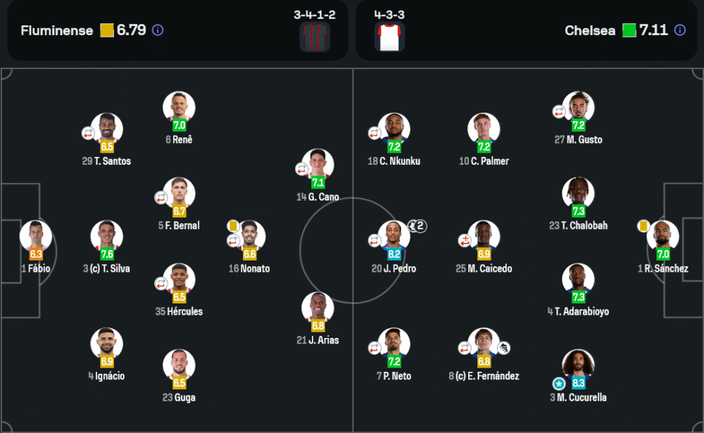 ฟลูมิเนนเซ่ใช้แผน 3-4-1-2 เน้นความหนาแน่นแดนกลางและการเติมของวิงแบ็ก แต่จังหวะรุกขาดความคม จบสกอร์ได้แค่ 3 ครั้งตรงกรอบจาก 12 ครั้ง ขณะที่เชลซีในระบบ 4-3-3 โชว์ความยอดเยี่ยมทั้งรุกและรับ เกมรับแน่นหนารับมือการครอสของฟลูมิเนนเซ่ได้หมด การสวนกลับเร็วของเชลซีคืออาวุธเด็ดในเกมนี้ เจา เปโดร และแนวรุกอีกสองข้างสร้างความอันตรายตลอด เกมรับของเชลซียืนป้องกันลึก รอสวนกลับได้ผล นี่คือจุดแตกต่างสำคัญเมื่อวิเคราะห์บอลแบบละเอียด