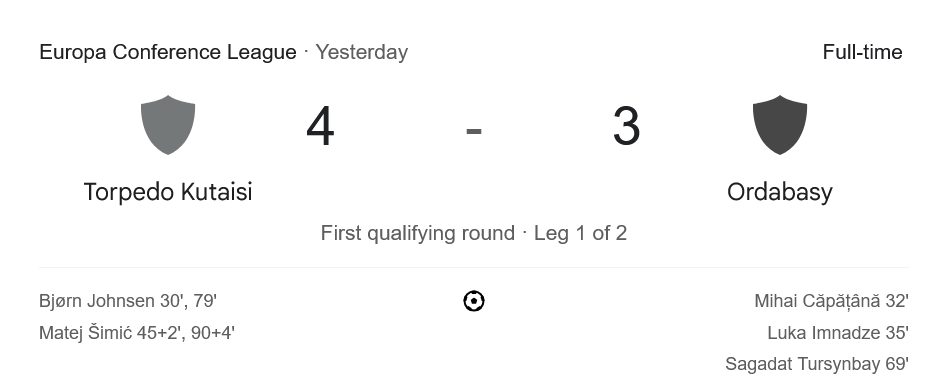 บ้านกีฬา ขอสรุปเกมสุดเดือดในค่ำคืนยูฟ่ายูโรปาคอนเฟอเรนซ์ลีก รอบคัดเลือกนัดแรกที่สนามคาตูซี่ เมื่อ ตอร์ปิโด คาตูซี่ เปิดบ้านเฉือนชนะ ออร์ดาบาซี่ย์ 4-3 แบบสุดระทึกในเกมที่เรียกเสียงเฮลั่นทั้งสนาม และตามคาดกับผลที่แฟนๆ รอคอยให้ติดตามแบบ ผลบอลสด กันจนวินาทีสุดท้าย