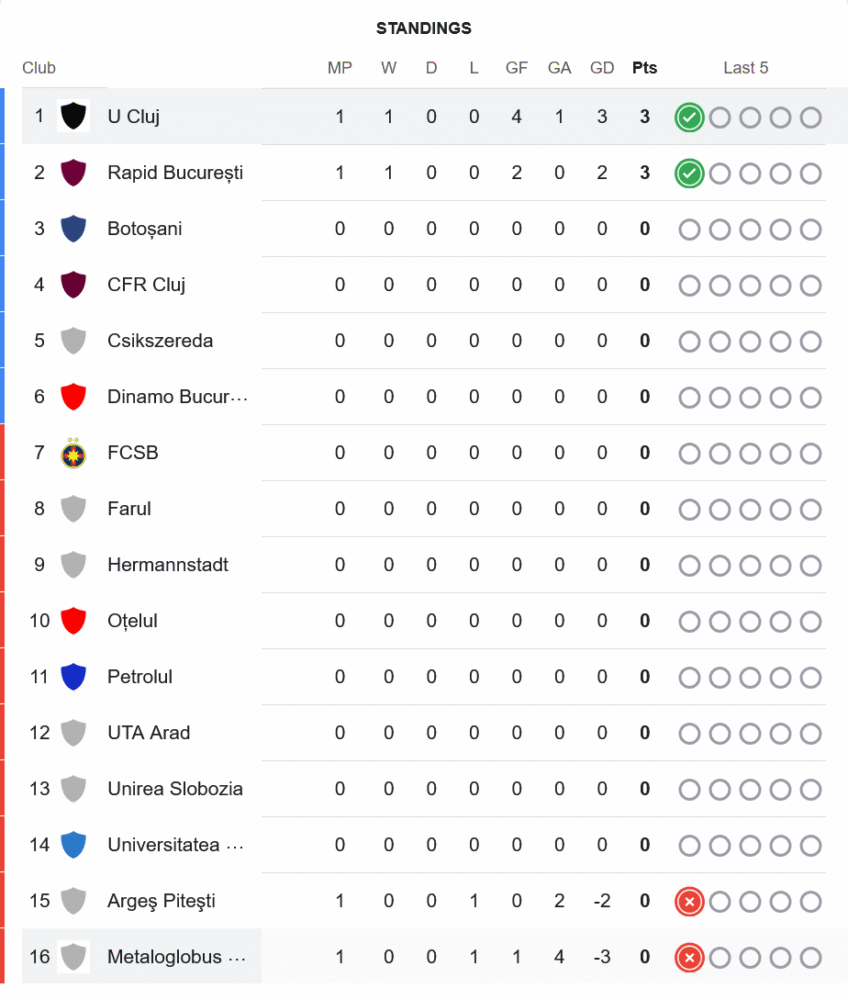 หลังชัยชนะนัดนี้ ยู คลูจ์ขึ้นนำจ่าฝูงทันที ด้วยการเก็บ 3 แต้มเต็ม และมีผลต่างประตูได้เสีย +3 ส่วนเมต้าล๊อกโลบูส หล่นไปอยู่อันดับสุดท้ายจากการพ่ายขาดลอย