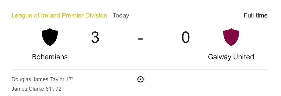 ชัยชนะนัดนี้ทำให้โบฮีเมี่ยนส์มี 41 แต้ม รั้งอันดับ 2 ของตาราง ไล่จี้ชัมร็อก โรเวอร์สเหลือเพียง 8 แต้ม ส่วนกัลเวย์ ยูไนเต็ดแพ้รวดอีกเกมยังอยู่ที่อันดับ 8 มี 29 แต้ม โอกาสแซงขึ้นกลางตารางเริ่มริบหรี่